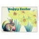 This watercolor floral daffodils flower clusters and cute rabbit and Easter eggs fill the cover of the card with template text on top. Personalise the cover and inside text, remove the text or edit using the design tool to select a font style, size, and colour.