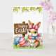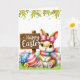 Send a message of love to your family member or friend with this Easter card design with bright colors and an image of a cute white rabbit with Easter eggs. The design can be personalized with a message for your beloved family member or friend! Don't think twice and get yours now.