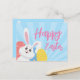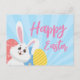 A cute white happy easter bunny rabbit with easter egg postcard, it a customisable design and i design this postcard only for zazzle so you won't find this design on any other print on demand store.