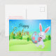 Cute Rabbit Holding Blue Pink Easter Eggs Holiday Postcard