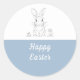 A funny Happy Easter sticker: it comes with a cute rabbit in line art and text underneath on dusty blue background tones.