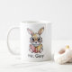 A sweet bunny wearing glasses and happily reading a book, perfectly designed for mugs. This charming illustration adds a cozy, joyful feel to coffee or tea time and makes a lovely gift for readers, teachers, kids, and animal lovers.
