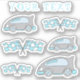 Cute Race Cars and Finish Flags with Your Text Kids Sticker. Add our name or any text.