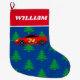 Cute race car with Christmas tree kid's stocking. Personalized design with custom name of child. Red, green and blue or customizable color. Cute x-mas decor for the Holidays. Change the quantity to get the cheapest price per sock. Script typography text. Fun decorations for children (boy or girl). Also nice for baby's 1st Christmas. Get one for son, nephew, grandson etc. Toy racecar illustration.