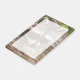 Sticky notes with a photograph of a cute and curious racoon resting his face on a wooden log. Adorable.