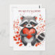 cute racoon with heart for valentine's day postcard