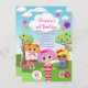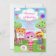 Start your little girls birthday party off right with our cute rag doll birthday invitation featuring a group of 4 rag dolls on a green lawn with cute polka dotted trees with a blue sky and a cute zebra, mouse, bird and little sheep. We offer a cute matching back for an extra special touch. A popular invitation for a sleepover pajama party. Cute for a sweet girls birthday party. Visit our shop to view other stylish & popular birthday party invitations & matching thank you notes, stickers & postage stamps. © Babystar designs