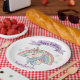 These cute and colourful custom party plates feature a beautiful illustration of a unicorn and pastel coloured rainbow. Little stars in matching colours surround the rainbow. A sample Happy Birthday banner is printed above the unicorn, and a sample name is printed below in an elegant purple script font. You can personalise the plates to include your own custom name or text.