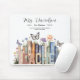 Surprise the teacher in your life or treat yourself (if you're the teacher) with this adorable monogram mousepad featuring a beautiful watercolor illustration of books on a bookshelf.