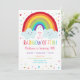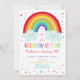 This cute birthday invitation features a colourful rainbow and clouds with rainbow confetti and faux gold glitter accents.