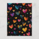 Cute Rainbow Colour Hearts Galaxy Black Background Postcard