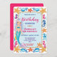 Cute rainbow mermaid seahorse star fish birthday save the date