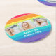 Cute Rainbow Photo Collage Custom Birthday Party Round Paper Coaster