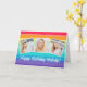 This cute rainbow birthday card features a 3 photo collage of the birthday girl or guy. 3 fun square photographs on a modern, colourful card with personalised white script below.