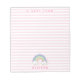 NewParkLane - Personalized Girls Notepad with a cute rainbow, against a pink striped background, and a text template for your name or other personal text.