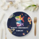 Cute rainbow Shark Galaxy Rocket birthday party Paper Plate