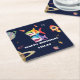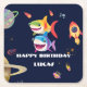 Cute rainbow Shark Galaxy Rocket birthday party Square Paper Coaster