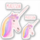 Add some fun to your child's lunch box, packages and more with these Cute Rainbow Unicorn Laptop Personalised Kids Stickers. This design has a two pretty white unicorns with flowers on top their pastel rainbow mane. Customised with child's name in white trendy minimal lettering. Perfect for back to school! Click personalise template option and enter name