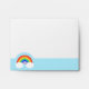 Don't just send mail, send them a colourful rainbow! This cute envelope features a rainbow pattern on a sky-blue background on the inside. The outside features a band of blue colour with rainbows on the front and back. Each rainbow graphic features fluffy white clouds and pink hearts.