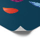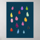 Cute colourful design of patterned raindrops with a boho theme. Creative and arty against a navy blue background. pattern collage art style raindrop teardrops.