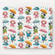 Add mirth to your mousepad with this design, which features an AI-generated repeating pattern of cute kitties and puppies garbed in galoshes, jackets, and rain ponchos and wielding colourful umbrellas while equally colourful raindrops fall about them.