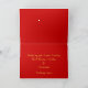 In a square are one black ram paper-cut and a golden ornament inside of which is a goat with ideogram. Behind the scene there is a red background on which decorative and ornate letters form the words: "Year of the Ram Goat. Design on horizontal folded greeting card. Matching holiday postcard, party supplies and more soon... Perfect for Chinese New Year of The Goat 2027 or Birthday (people born in Goat year).