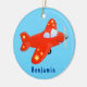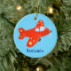 Cute red aeroplane flying cartoon illustration ceramic tree decoration