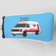 This happy red ambulance is on the way to help! Drawn in fun cartoon style.