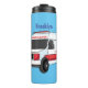 This happy red ambulance is on the way to help! Drawn in fun cartoon style.