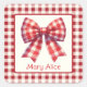 These cute stickers feature a red and cream gingham plaid bow with a matching red gingham pattern background. Personalize with your choice of name or special text. Great for any occasion.