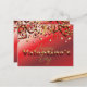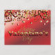 Cute personalised Valentine's Day postcard design featuring red and gold striped hearts on a shiny red gradient background and the text "Happy Valentine's Day".