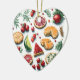 Capture the magic of the holiday season with our enchanting Christmas ceramic ornament, adorned with a watercolor design featuring adorable red and green cookies and fruits, which adds a touch of whimsy to any festive display. What sets it apart is the editable text feature on the back, allowing you to personalise your message with heartfelt love words in simple, clean, black typography and the name written in red modern script. Whether hanging on your tree or gifted to a special someone, this ornament is the perfect choice to spread warmth and cheer.