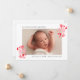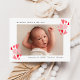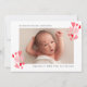 Announce your little one’s arrival with this adorable red and pink heart birth announcement card. The design features your baby’s horizontal photo centred on the front, framed by a mix of soft pink and deep red hearts in each corner for a sweet, love-filled touch. Add your baby’s name and birth stats in a clean, modern font to personalise the card. The back includes space for three square photos and a custom message, making it a perfect keepsake for friends and family. While ideal for Valentine’s Day births, this heart-themed design is perfect for baby girls or boys any time of year.
