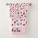 Cute Red and Pink Strawberry Pattern Personised Bath Towel Set