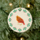 Cute Red Bird & Holly Berries Ceramic Tree Decoration
