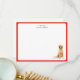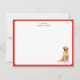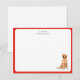 Cute personalized hand illustrated Watercolor Golden Retriever thank you note card with festive red border. Perfect for sending holiday greetings to loved ones.