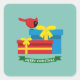 Cute Red Cardinal Opening A Blue Gift Square Sticker