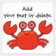 Cute Red Cartoon Crab Design Personalised Square Sticker