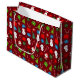 Cute Red Christmas Santa & Snowman Pattern Large Gift Bag