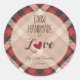 Cute Red Classic Tartan Handmade with Love Quote Classic Round Sticker