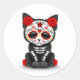 Cute Red Day of the Dead Kitten Cat, white Classic Round Sticker
