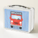 Cute red delivery truck cartoon illustration metal lunch box
