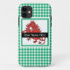 A fun Barely There case for your iPhone 5/5s to personalize, with a cute little red dragon holding a place to add your name on a green and white check gingham background.