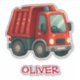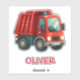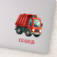 This personalised sticker features a cute red dump truck.