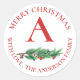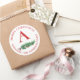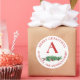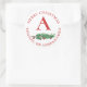 Cute Red Flowers Berries Monogram Merry Christmas Classic Round Sticker
