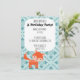 This cute woodland animal invitation is perfect for a children's birthday party or other special event. This design features a cute red fox in bright orange against a light blue patterned background. These flat panel cards have an orange chevron patterned back. This coordinate with other items in our Woodland Whimsy collection. Use the fill-in-the-blank fields to easily customise this invite with your party information.