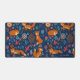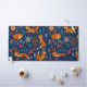 Cute red foxes and retro flowers seamless pattern on a dark blue background. Perfect gift for lovers of animals and foxes.