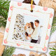 Red Gingham Plaid Watercolor Photo Square Christmas Holiday Ornament - Elegant custom family photo textured watercolor illustration design. Personalise with your family photo, name, and year.
