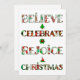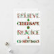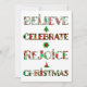 Spread Christmas cheer with this cute patterned design featuring "Believe, Celebrate, Rejoice, Christmas" in festive typography filled with red and green holiday motifs. Every letter showcases ornaments, Christmas trees, poinsettias, and classic seasonal patterns that bring joy and warmth to your celebrations.