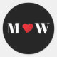 Cute red heart custom couple initials monogram classic round sticker